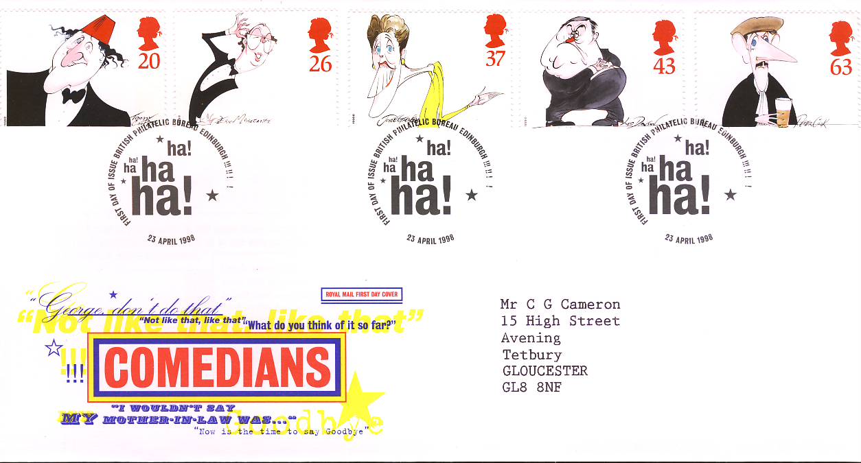 Comedians Royal Mail First Day Cover Bureau fdi 23 April 1998 with insert card refA534