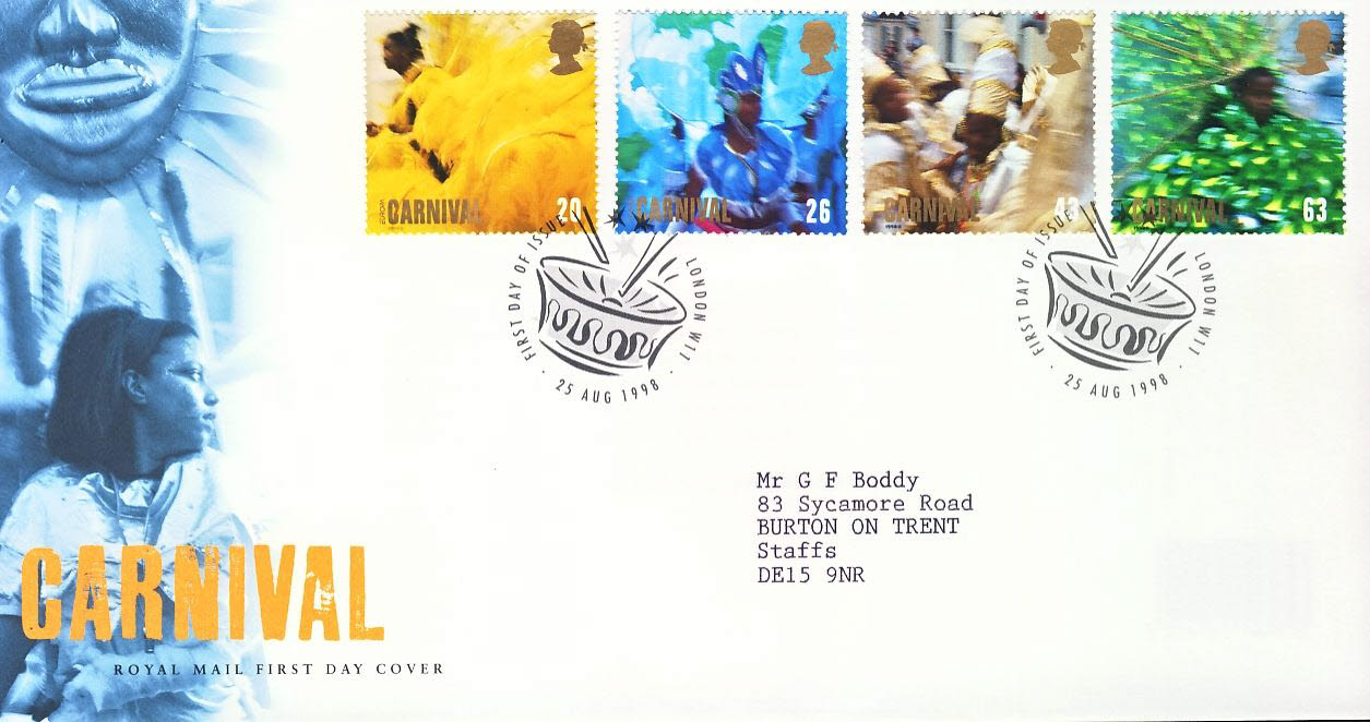1998-08-25 Carnivals Stamps FDC cover refcd462. In good condition. With insert card. Please see larger photo and full description for details.