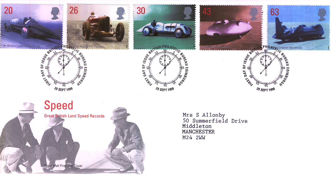 1998-09-29 Great British Land Speed Records Royal Mail FDC Bureau with insert card refA39