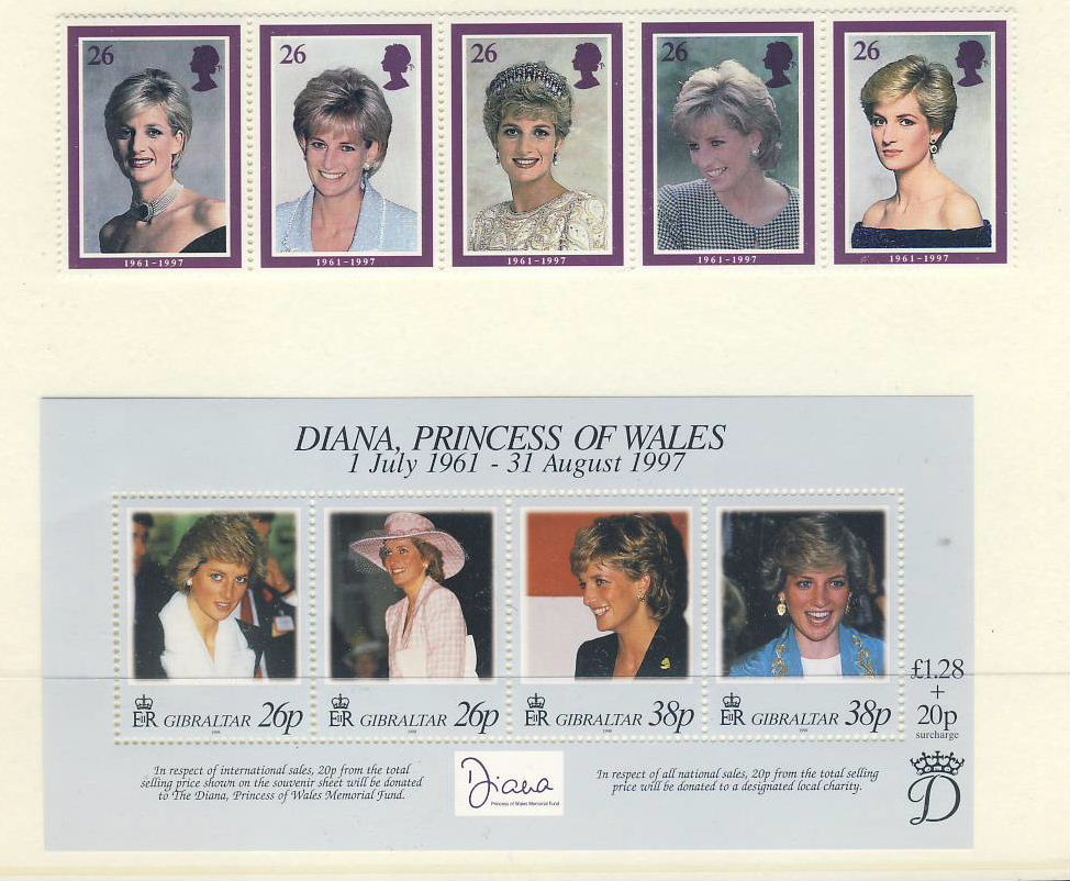 1998 Diana Princess of Wales Gibraltar MS stamps set refDA130 Diana Princess of Wales 1961-1997 Westminster collectors series. Unused. Ideal Gift. Very good condition