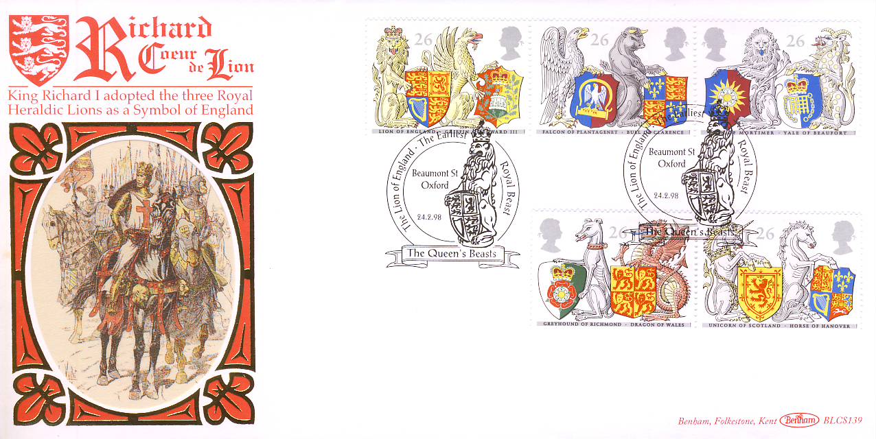 1998 The Queens Beasts special handstamp Benham Ltd Edition cover BLCS139 Beaumont St Oxford. With insert card. Our ref Aviation Heritage Album.