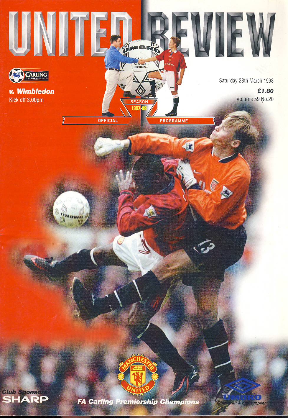 1998 March 28th Man Utd v WIMBLEDON Football Programme UNITED REVIEW ref102351