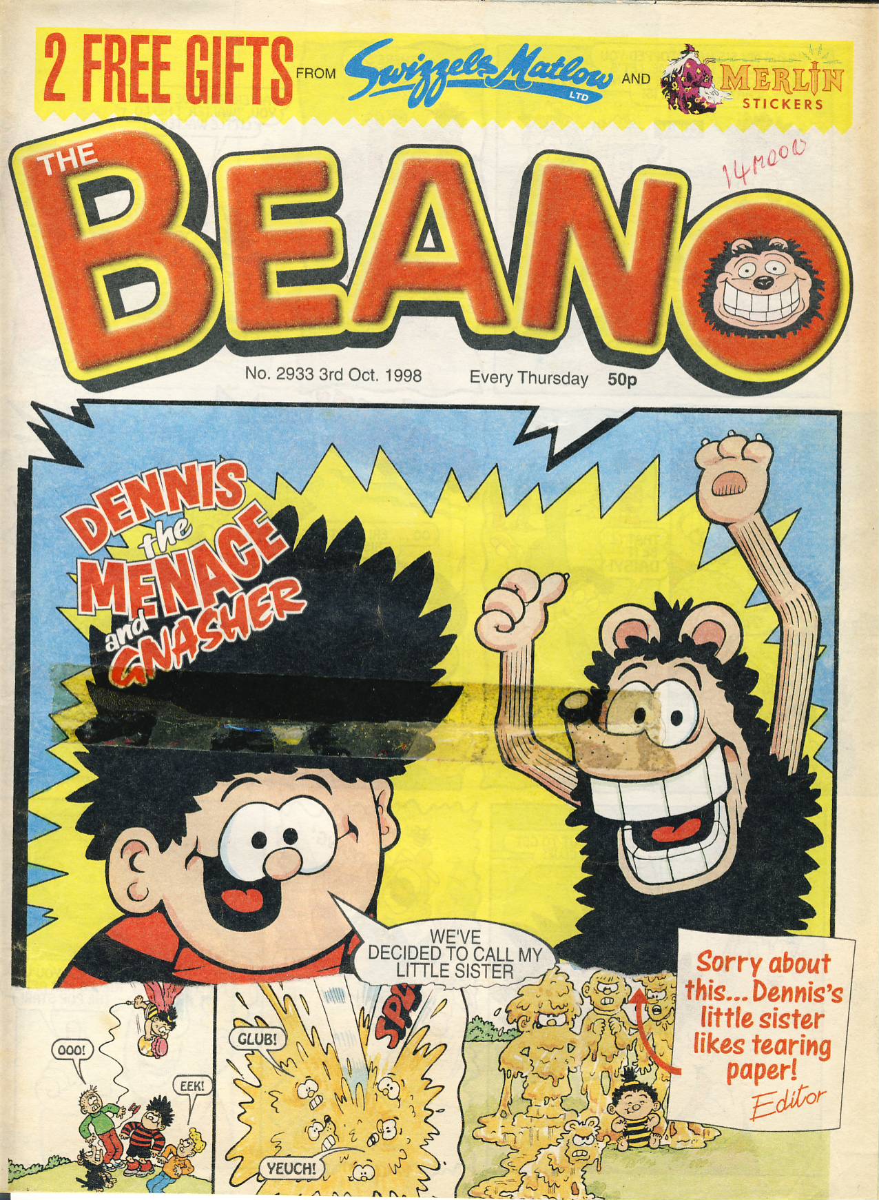1998 October 3rd BEANO vintage comic Good Gift Christmas Present Birthday Anniversary ref243