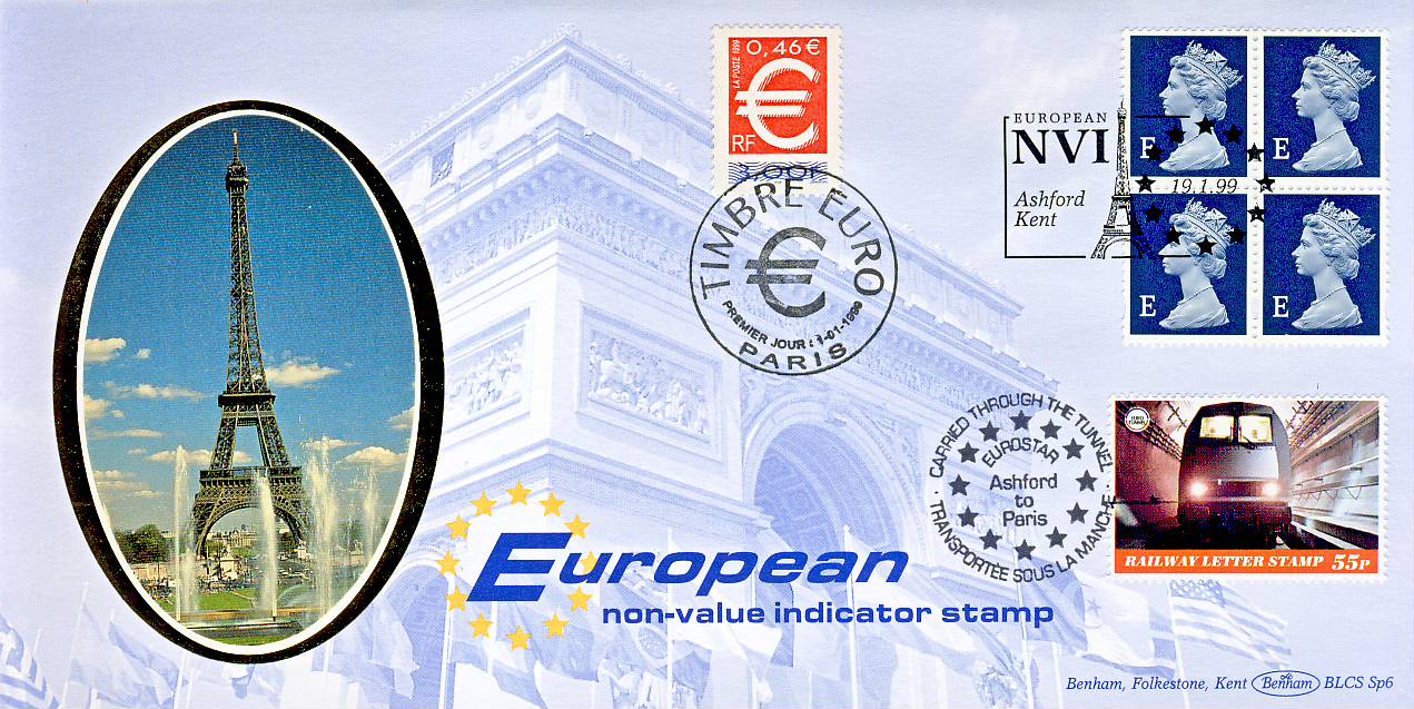 1999-01-19 European NVI Airmail Stamps FDC ASHFORD to PARIS Eurostar Cover refG259