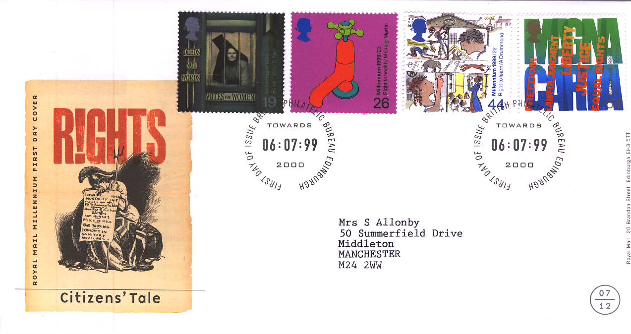 1999-07-06 Citizens Tale Royal Mail Millennium FDC Bureau fdi with insert card refA47