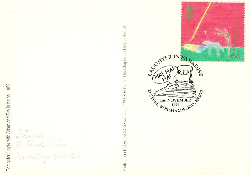 1999 ADAM EVE Laughter in Paradise Elstree Boreham Wood RIP Vintage Postcard refP1