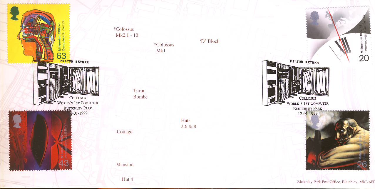1999 Bletchley Park PO LTD EDITION cover Enigma Collosus Worlds 1st Computer Milton Keynes shs ref132albumB10
