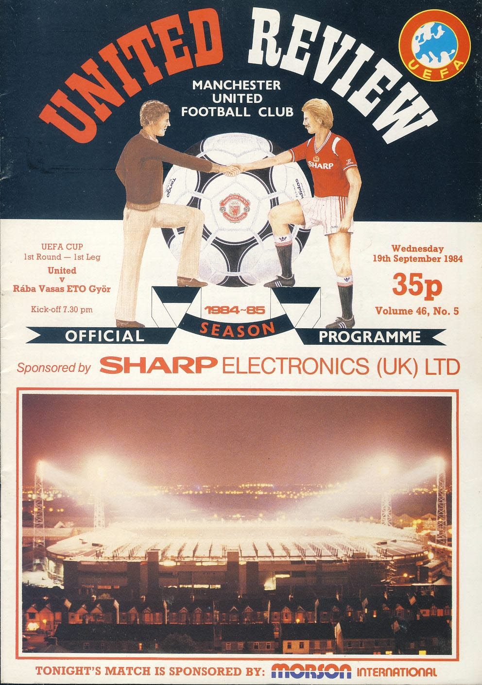19th Sept 1984 Manchester Utd v Raba Vasas ETO Gyor Official Programme refB101002 Vintage publication as listed and shown in the photo. Token removed. Please read full description for condition report.