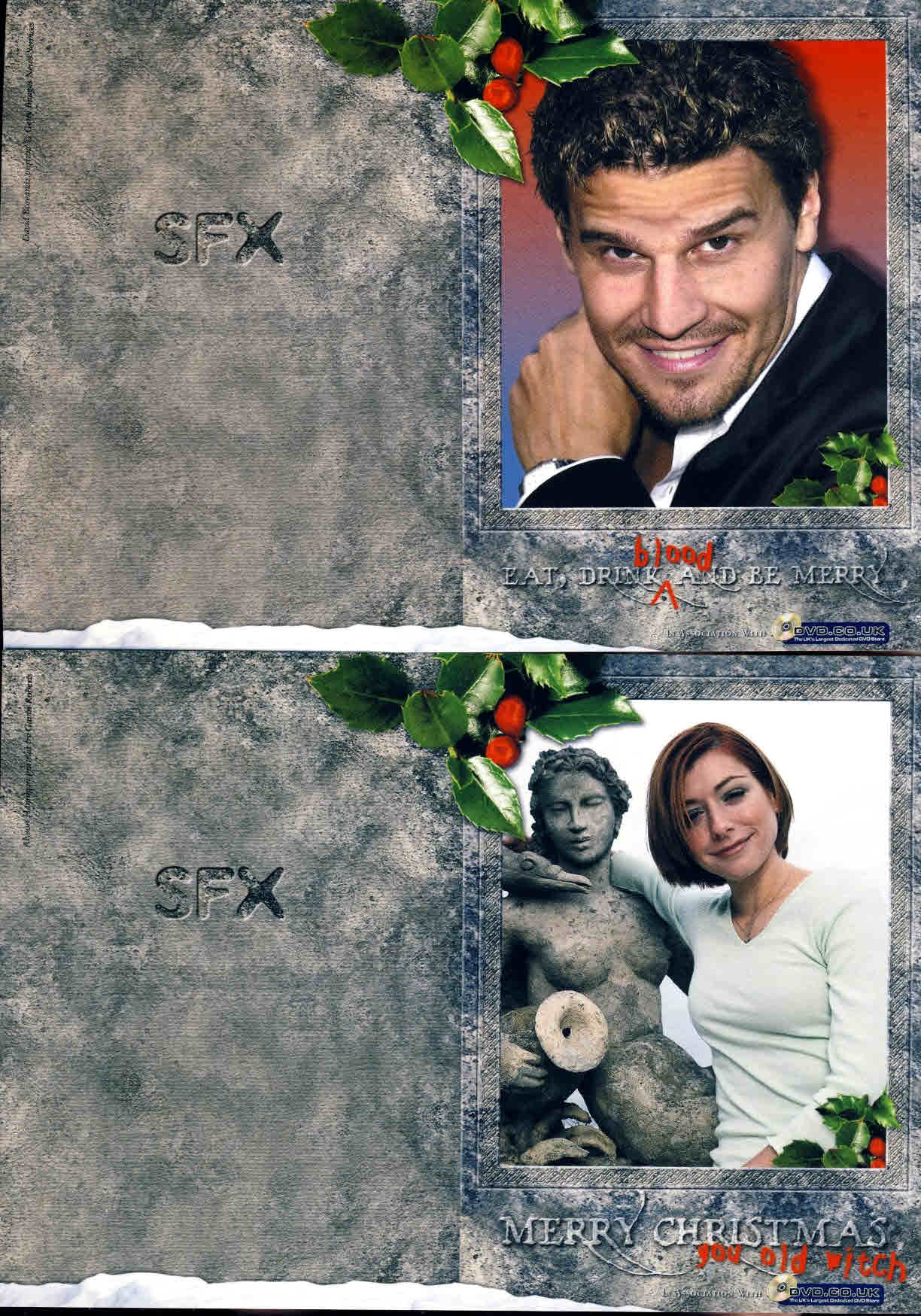 2 SFX Christmas Cards ANGEL & WILLOW approx 21x14cm unfolded size refS2-036 Good Condition. Photo shows not folded. Greeting printed on other side (inside when folded). Produced by SFX magazine. Please read the full description and see photo.
