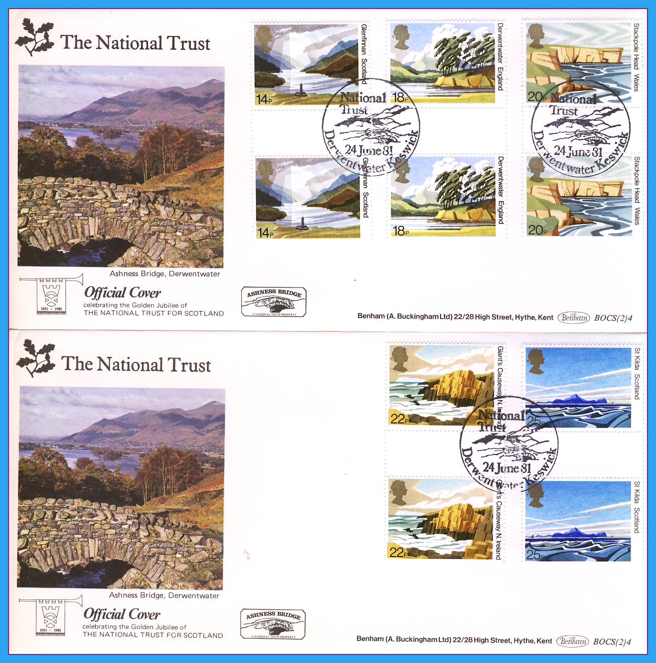 2 x 1981 National Trust Official Cover Scotland Gutter Pairs Stamps Benham First Day Covers. DERWENTWATER cancel rc146