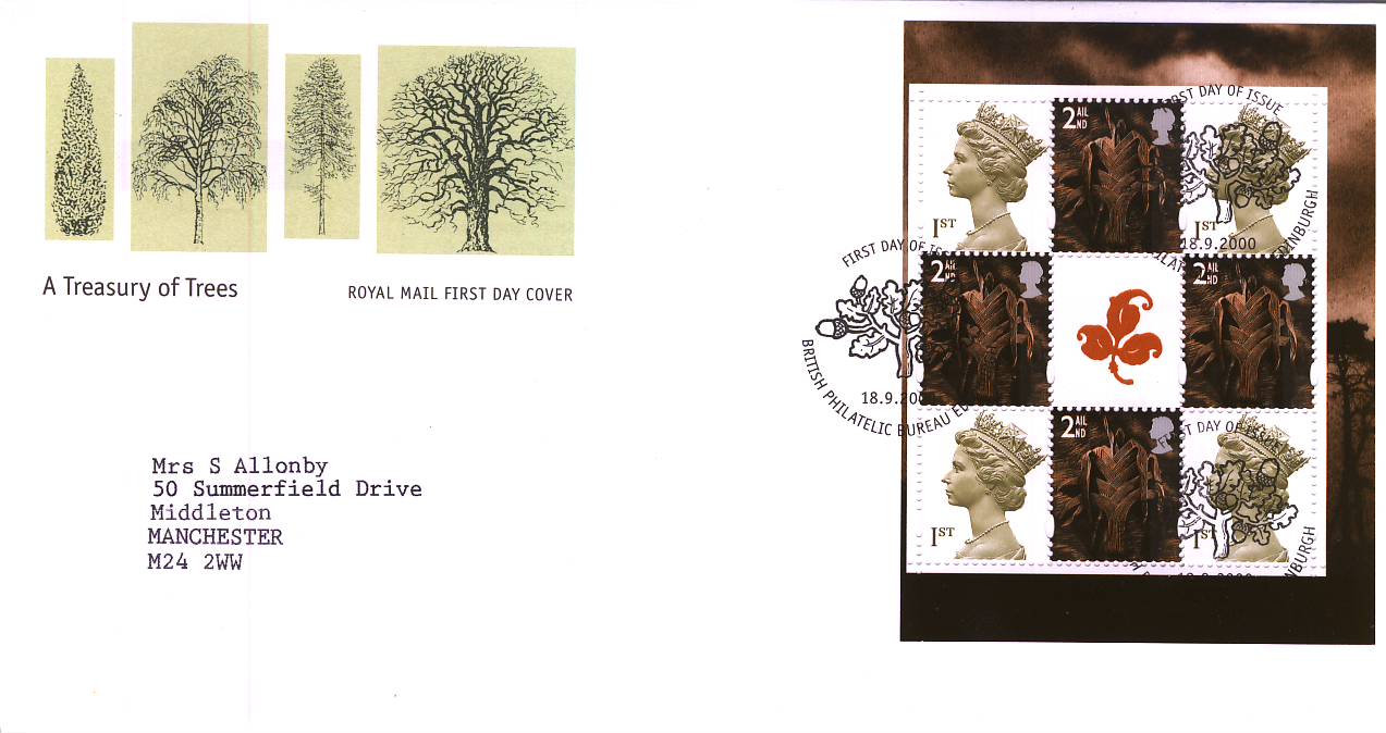 2000-09-18 A Treasury of Trees Prestige Stamp Book Pane FDC Bureau fdi refA63 2000 A Treasury of Trees Royal Mail First Day Cover Prestige Stamp Book Pane with Bureau fdi Typed Address refA63 Condition Please see full description and photo for condition report. Feel free to ask any questions. Thank you. Condition Report Please see full description and photo for condition report. Feel free to ask any questions. Thank you. Reference 2000-09-18 A Treasury of Trees PSB Pane FDC refA63