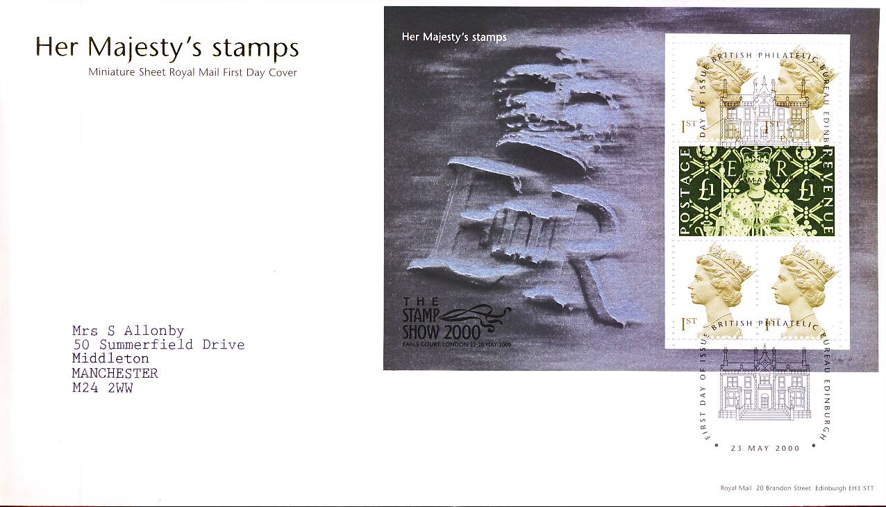 2000 Her Majestys stamps Minisheet Royal Mail FDC Stamp Show fdi Bureau A481