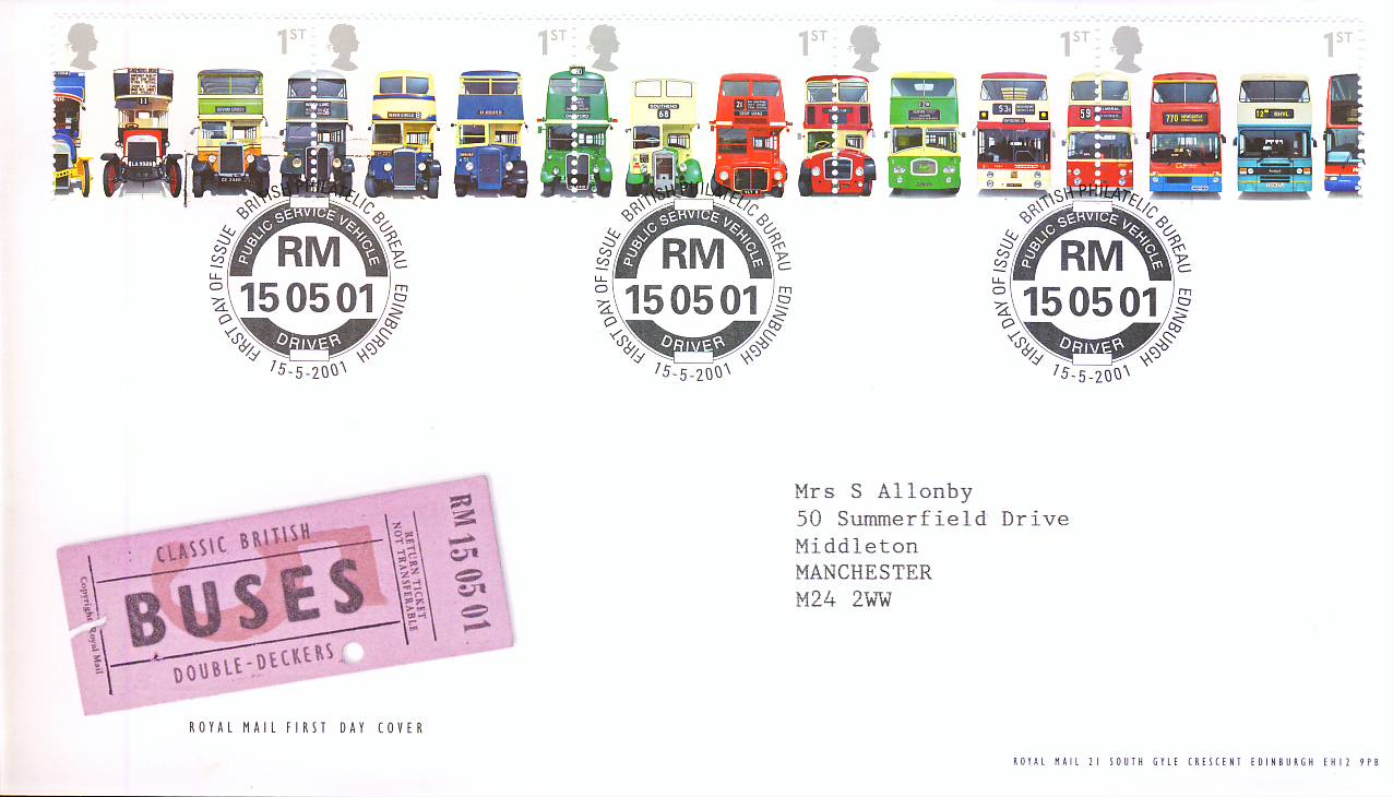 2001-05-15 Buses Royal Mail FDC Bureau Public Service Vehicle fdi A449