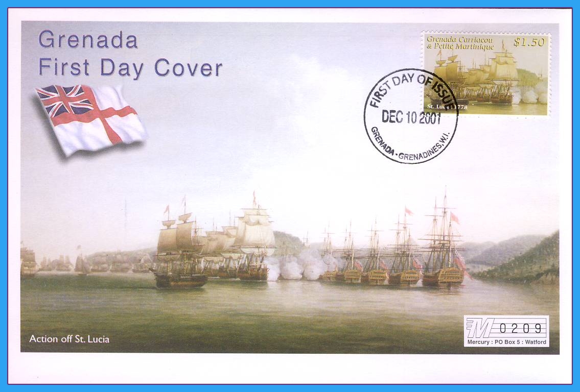 2001 Action off St Lucia Grenada stamped FDI numbered Mercury First Day Cover refB14 Unsealed. No insert card.