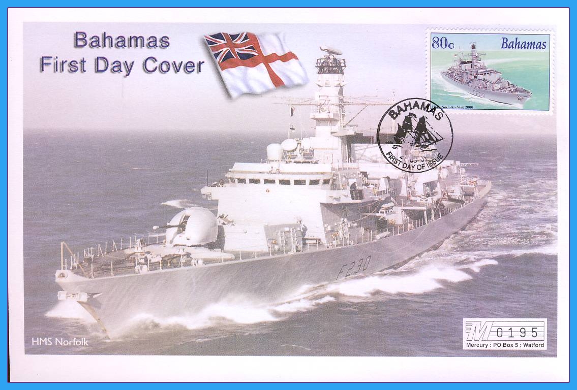 2001 Bahamas HMS Norfolk Numbered Mercury First Day Cover refB55 Unsealed. No insert card.