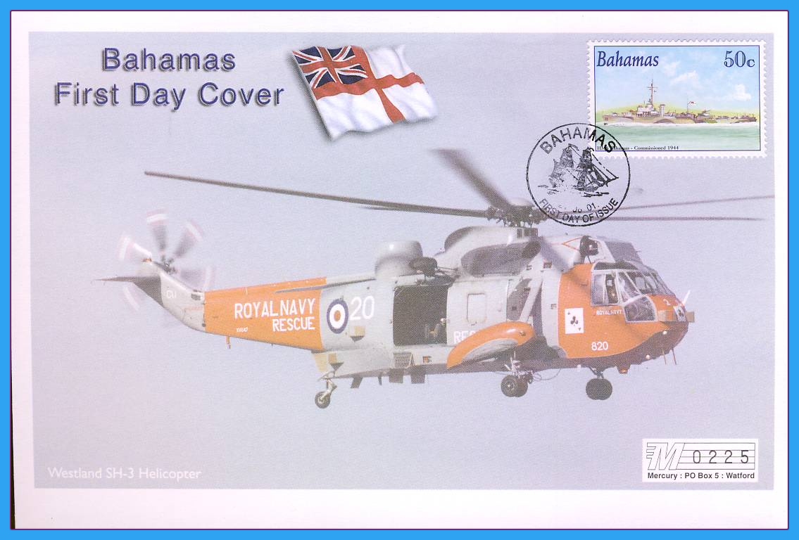 2001 Bahamas Westland SH-3 Helicopter Mercury First Day Cover refB56