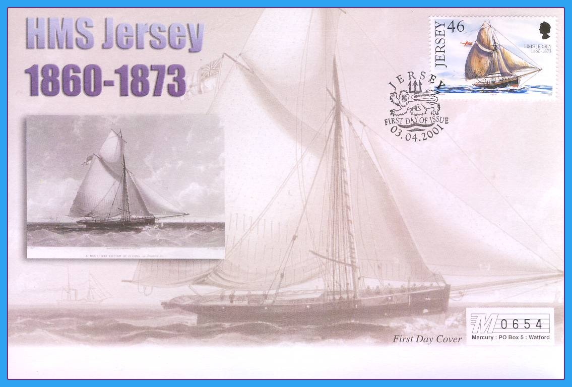 2001 HMS Jersey stamped FDI numbered Mercury First Day Cover refB18 Unsealed. No insert card.