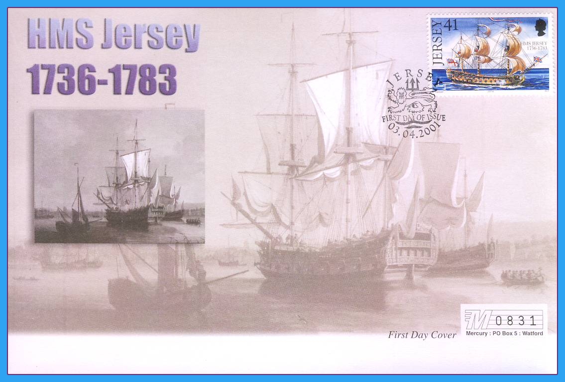 2001 HMS Jersey stamped FDI numbered Mercury First Day Cover refB21 Unsealed. No insert card.