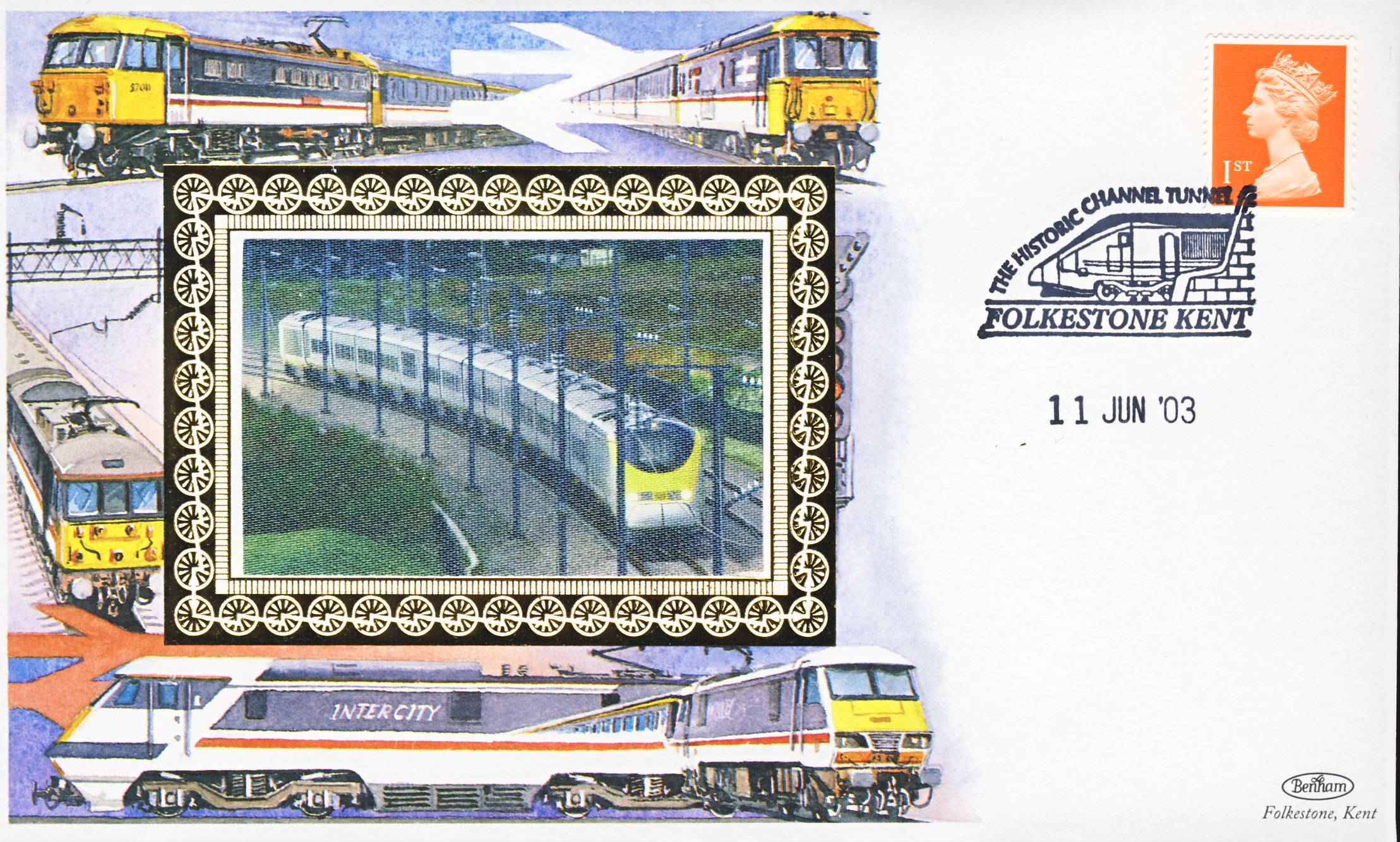 2003 Channel Tunnel Rail Link Phase One Benham Silk Train Cover with special handstamp Historic Channel Tunnel FOLKSTONE KENT rail series 147 – our ref 39