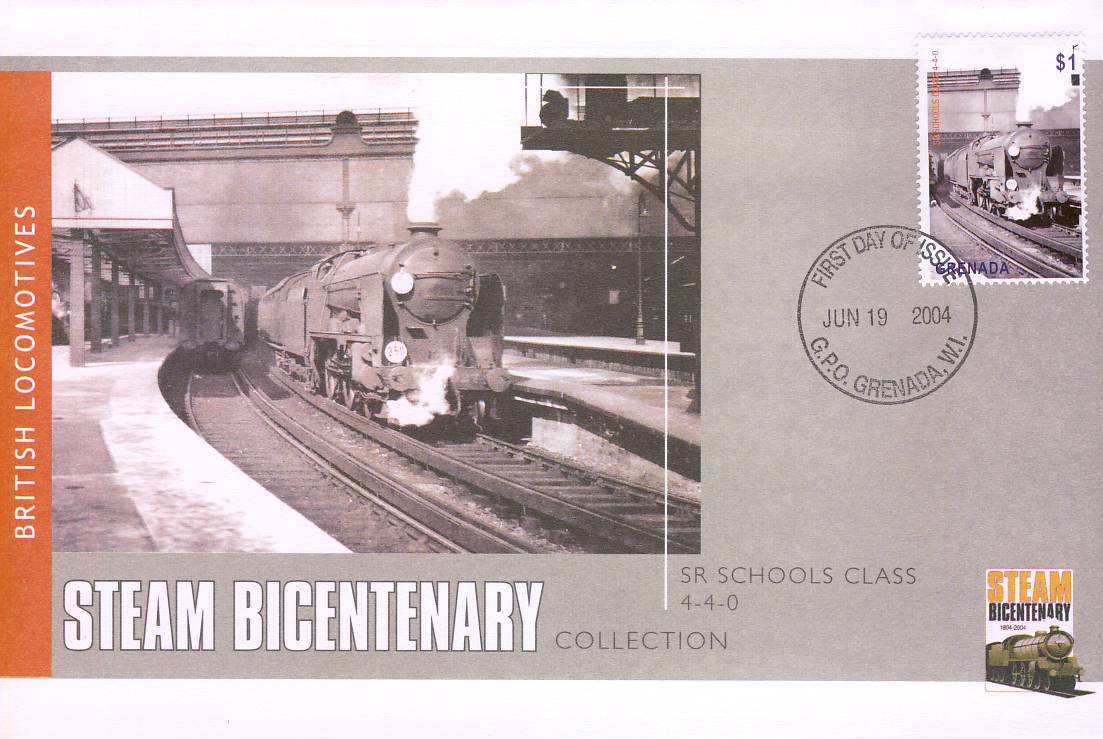 2004 Grenada fdi Southern Rail Schools Class Steam Bicentenary commemorative cover