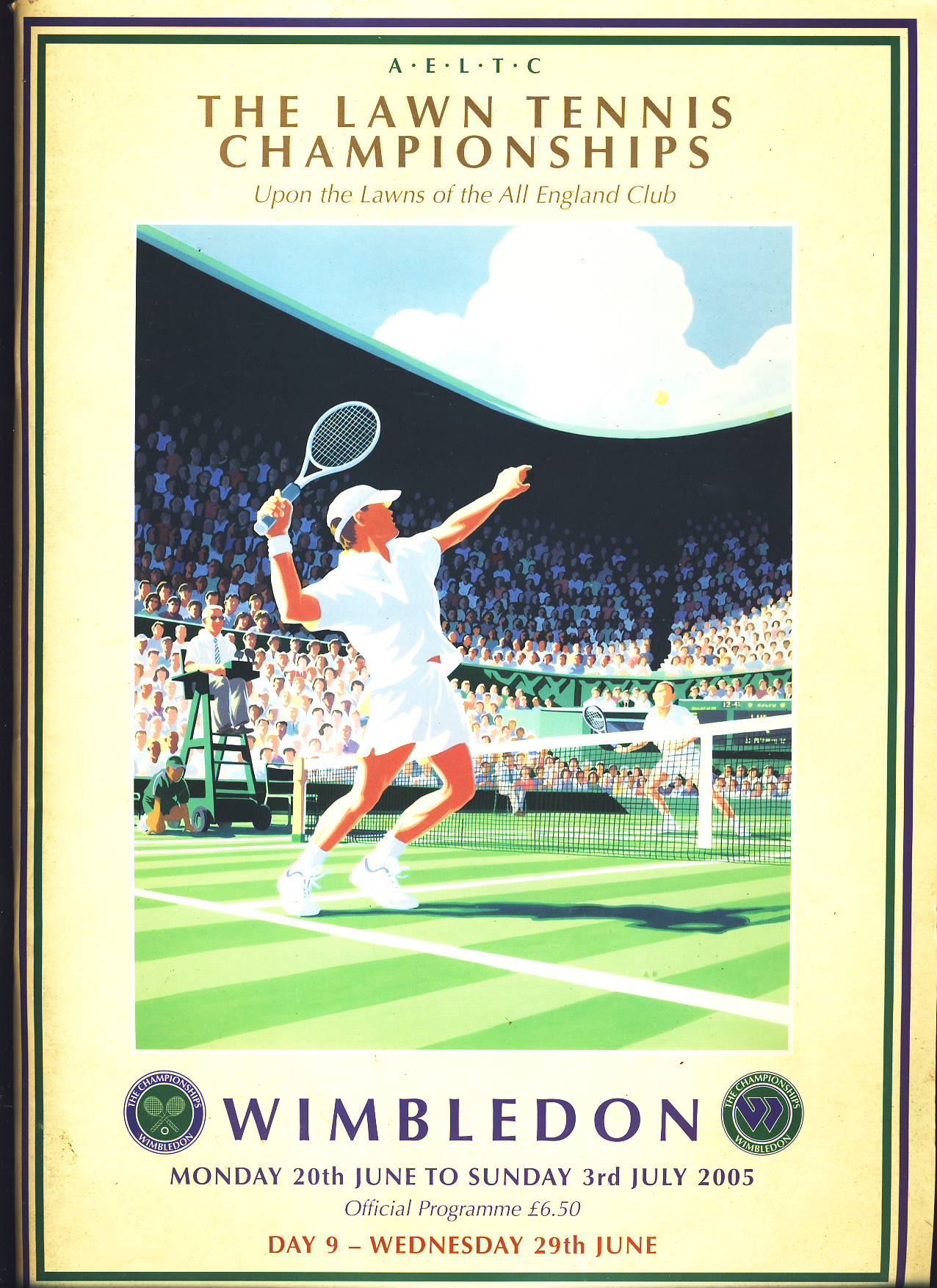 2005 WIMBLEDON Official Programme Lawn Tennis Championships ref101624 Day 9 Wednesday 20th June 2005 magazine. Measures approx 30cm x 22cm 130 page vintage brochure is pre-owned in read condition.