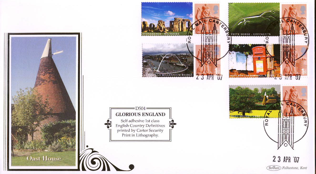 2007 D504 Glorious England Oast House Self adhesive 1st Class Definitives LTD ED Benham FDC ROYAL MAIL CANTERBURY shs rcd91