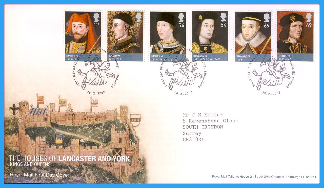 2008-02-28 Royal Households in History First Day Cover Lancaster and York Kings and Queens refc68
