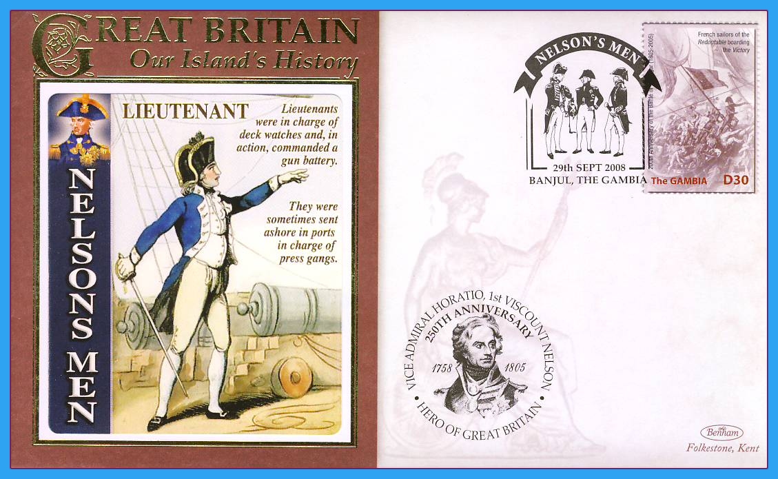 2008 Our Islands History BENHAM cover NELSON’S MEN Banjul The Gambia. Good condition. Unsealed. Blank insert card. Refb3