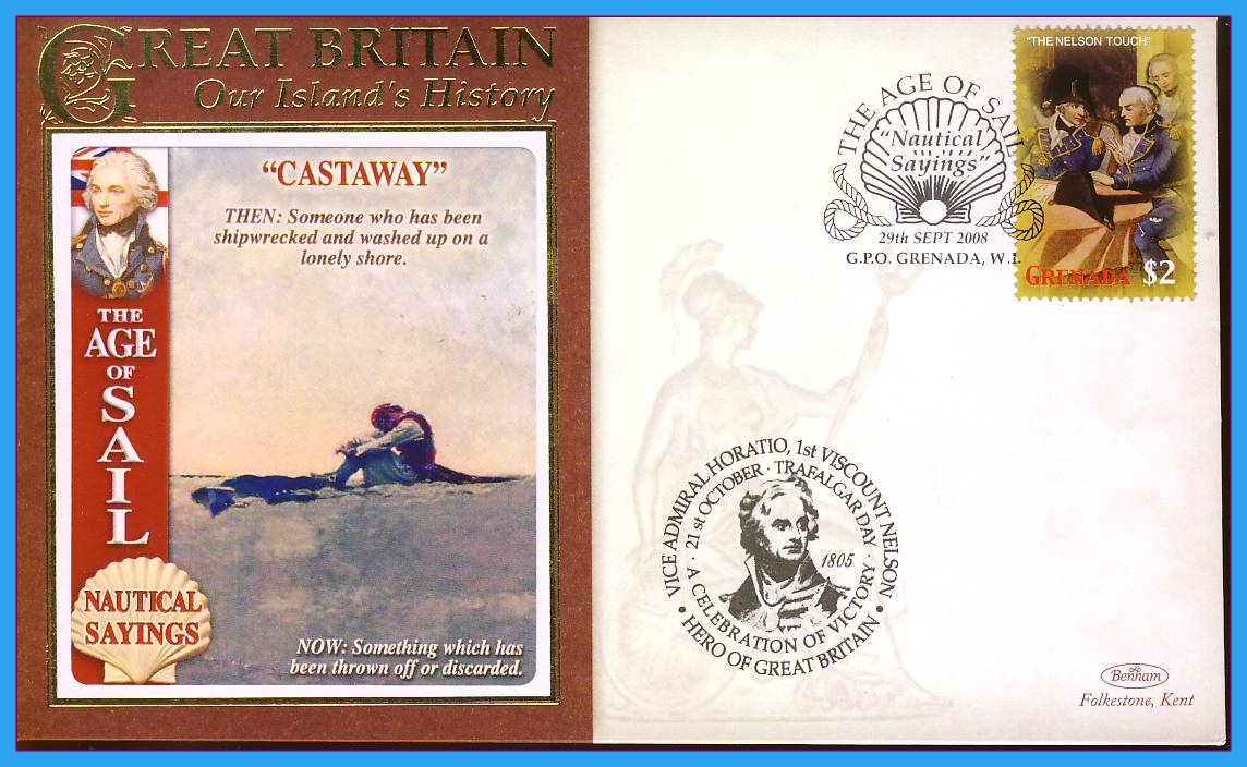 2008 Our Islands History cover ‘CASTAWAY’ Nautical Sayings Age of Sail GRENADA Horatio Nelson Trafalgar ref c137