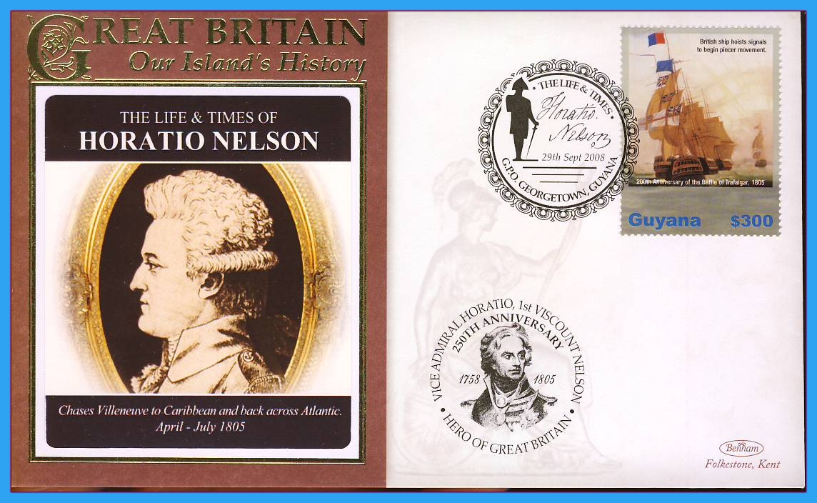 2008 Our Islands History Benahm cover Chases Villeneuve to Caribbean and back across Atlantic. Life & Times of Horatio Nelson TRAFALGAR Guyana ref c173