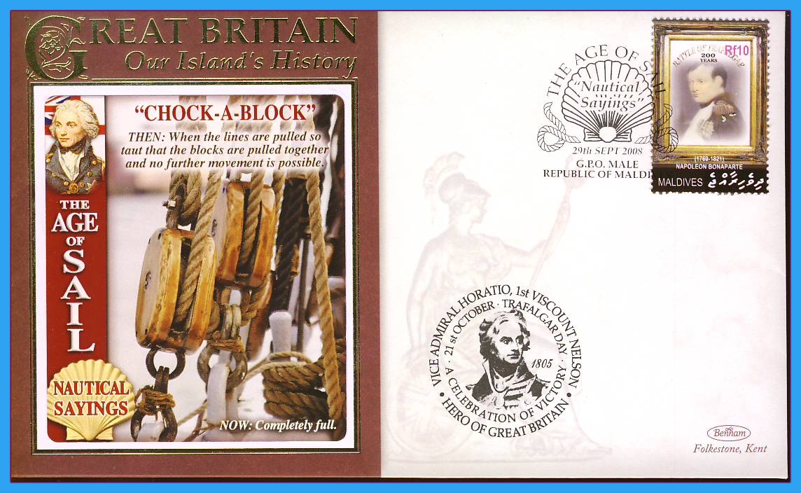 2008 Our Islands History cover ‘Chock-a-Block’ Nautical Sayings Age of Sail. MALDIVES Napoleon Bonaparte HORATIO NELSON Ref c136