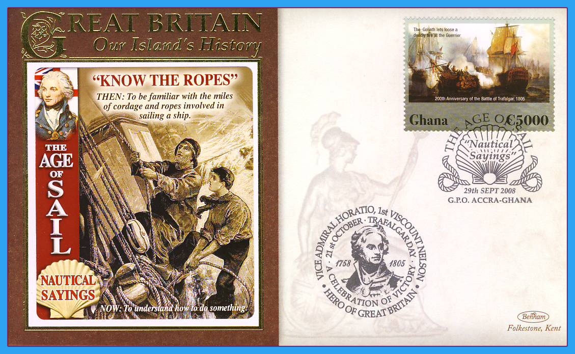 2008 Our Islands History Limited Edition Benham cover The Age of Sail NAUTICAL SAYINGS Know the Ropes Horatio Nelson Trafalgar ACCRA-GHANA refb31