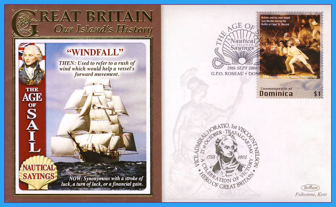2008 Our Islands History Limited Edition cover NAUTICAL SAYINGS Wind Fall Horatio Nelson Trafalgar The Age of Sail GPO ROSEAU DOMINICA refb26