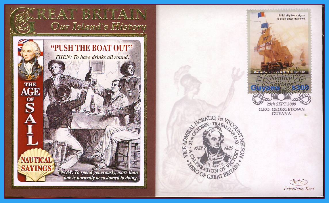 2008 Our Islands History cover ‘PUSH THE BOAT OUT’ Nautical Sayings Age of Sail Georgetown Guyana HORATIO NELSON Ref c138