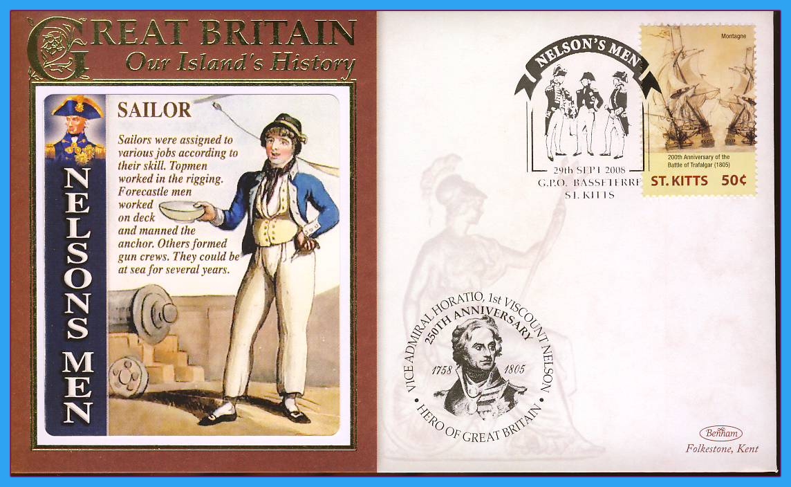 2008 Our Islands History Benham cover SAILOR Nelsons Men ST KITTS Battle of Trafalgar ref c157
