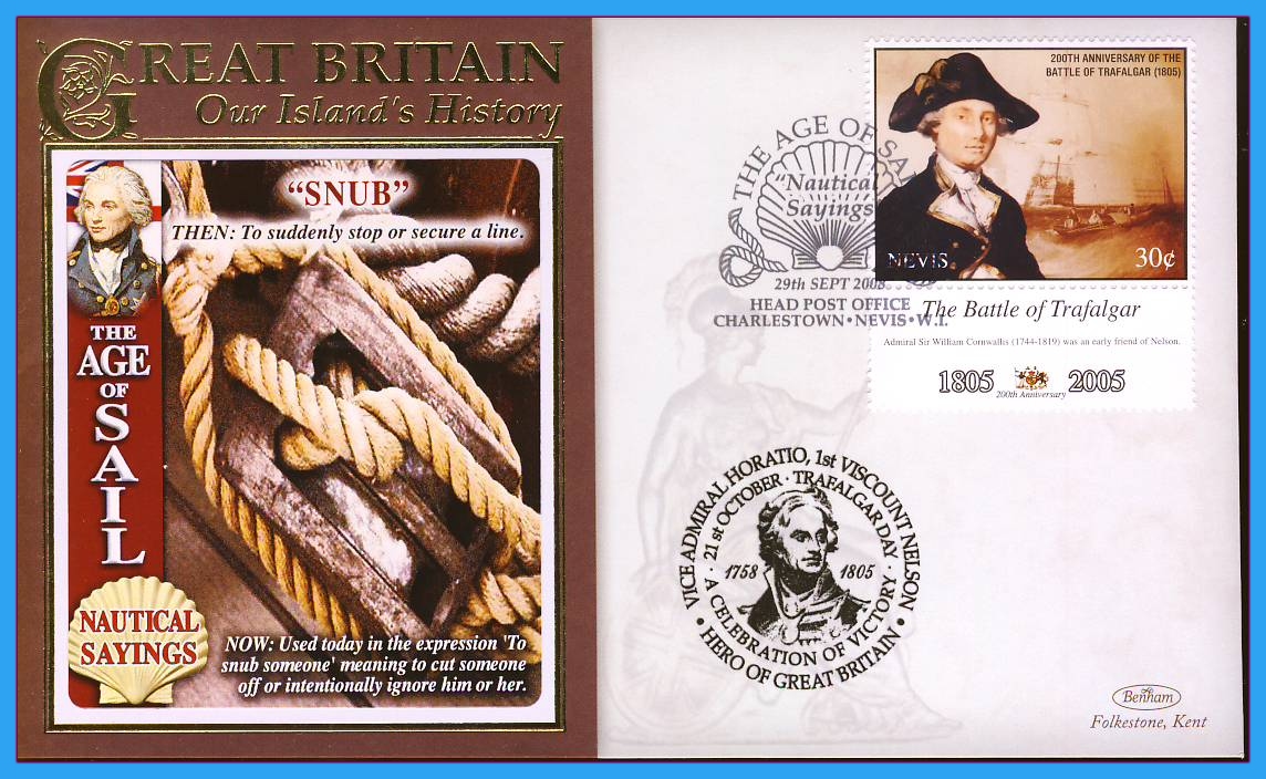 2008 Our Islands History cover ‘SNUB’ Nautical Sayings Age of Sail Horatio Nelson Charlestown NEVIS WI Trafalgar rc133 2008 Our Islands History Benham cover ‘SNUB’ Nautical Sayings Age of Sail Horatio Nelson Charlestown NEVIS WI Trafalgar. refc133 More information 2008 Our Islands History cover ‘SNUB’ Nautical Sayings Age of Sail Horatio Nelson Charlestown NEVIS WI Trafalgar rc133 Condition Please see full description and photo for condition report. Feel free to ask any questions. Thank you. Condition Report Please see full description and photo for condition report. Feel free to ask any questions. Thank you. Reference 2008 Our Islands History cover ‘SNUB’ Nautical Sayings Trafalgar rc133