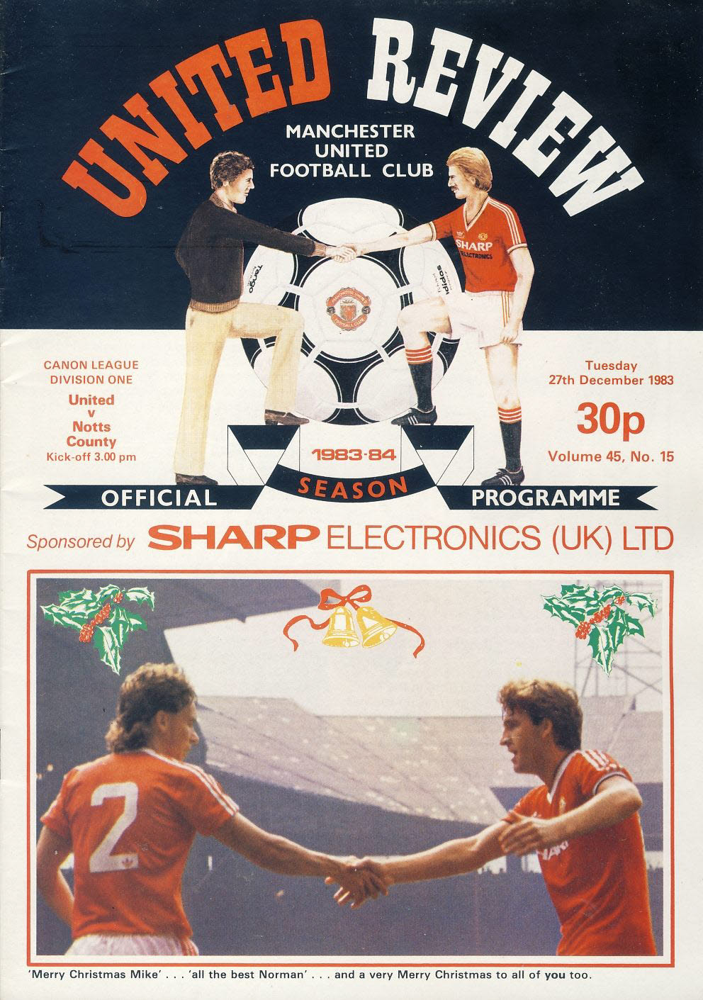27th December 1983 Manchester Utd v Notts County Official Programme refB101016