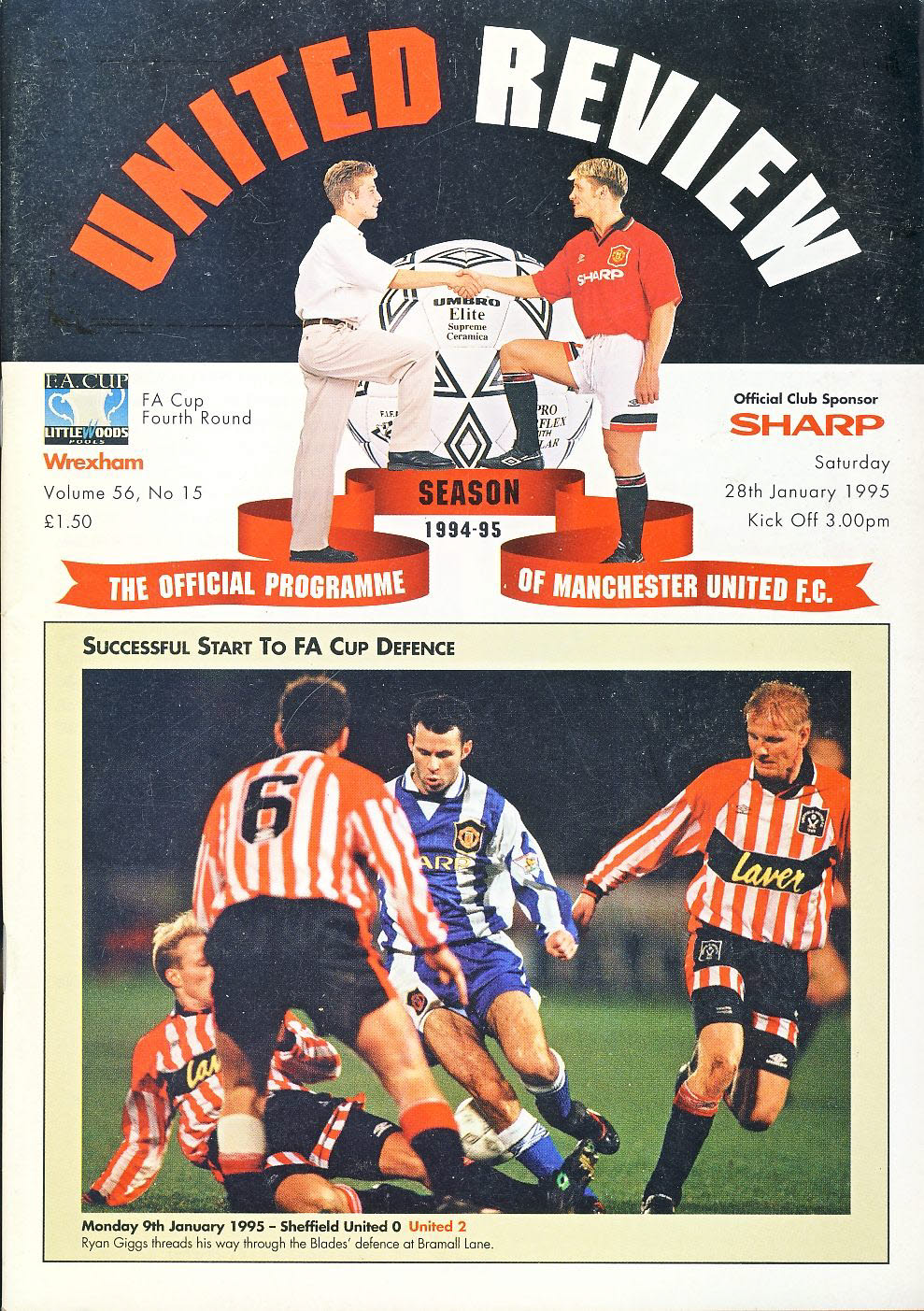 28th Jan 1995 Manchester Utd vs Wrexham Official Programme ANDREI KANCHELSKIS centre photo ref100117 Vintage publication as listed and shown in the photo. Please read full description for condition report.