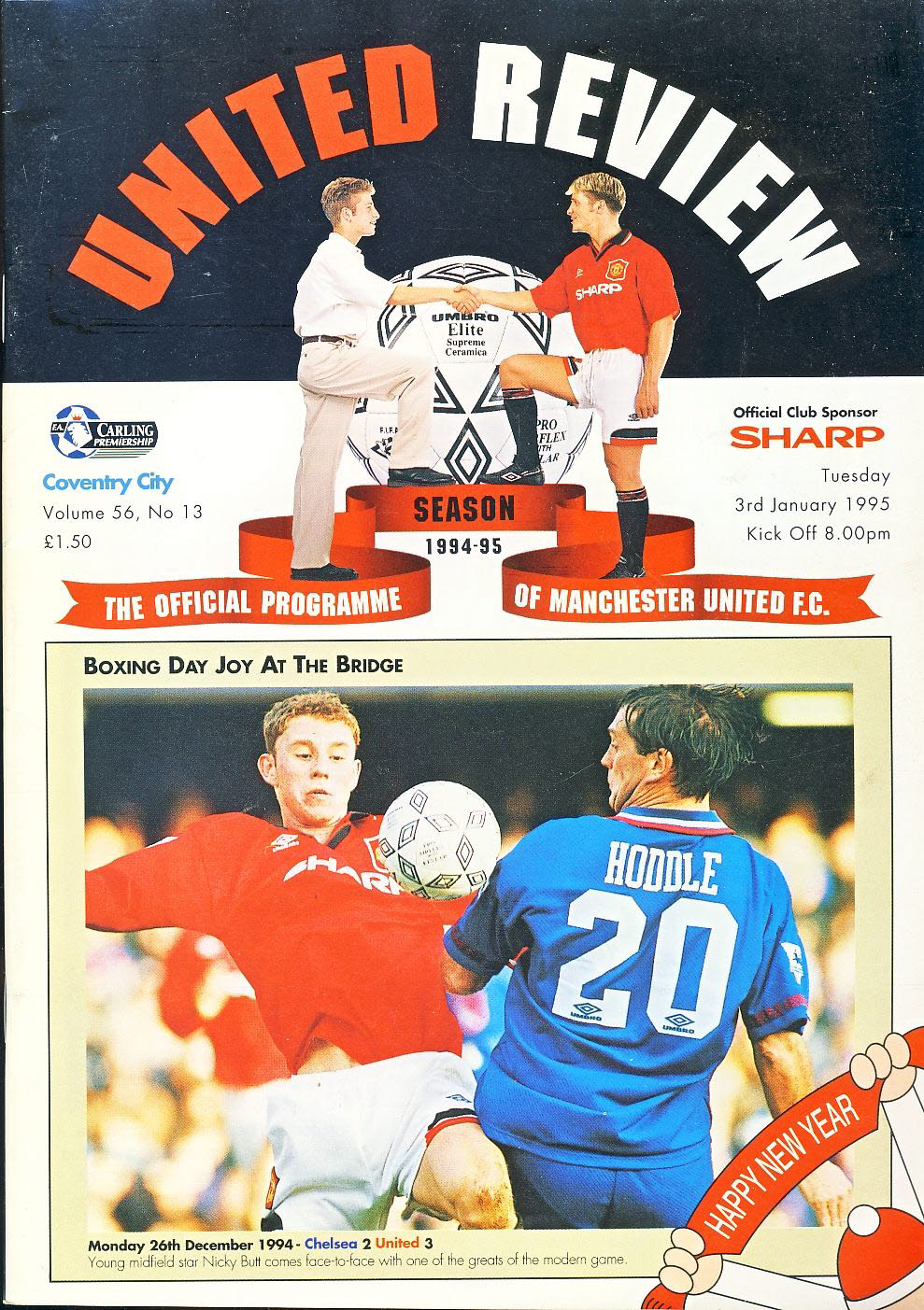 3rd Jan 1995 Manchester Utd vs Coventry City Official Programme DAVID MAY centre photo ref100127