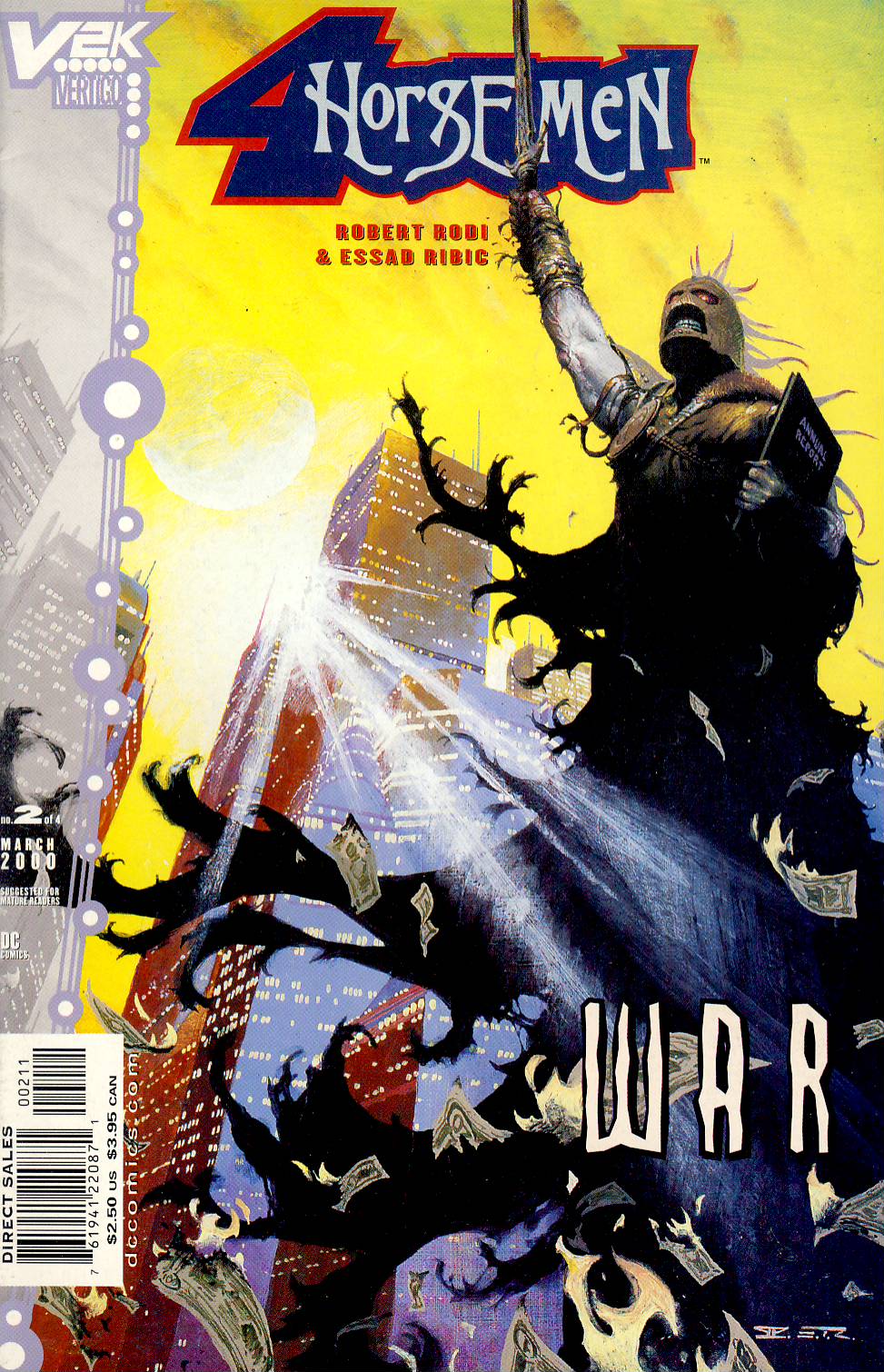 4 Horsemen no.2 WAR March 2000 DC Comics Vertigo VGC ref101555 Robert Rodi & Essad Ribic Direct Sales Comic in very good read condition.