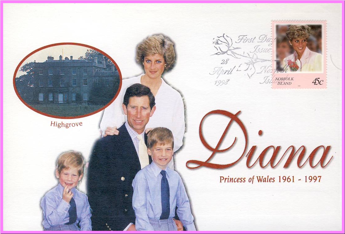 45c Norfolk Island Diana Princess of Wales 1998 stamp cover refDA10