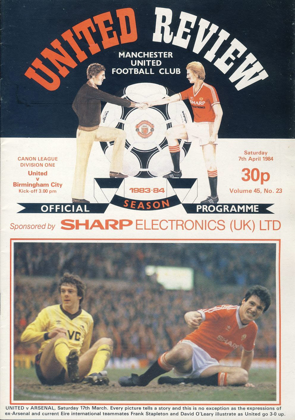 7th April 1984 Manchester Utd v Birmingham City Canon League Official Programme refB101006 Vintage publication as listed and shown in the photo. Please read full description for condition report.