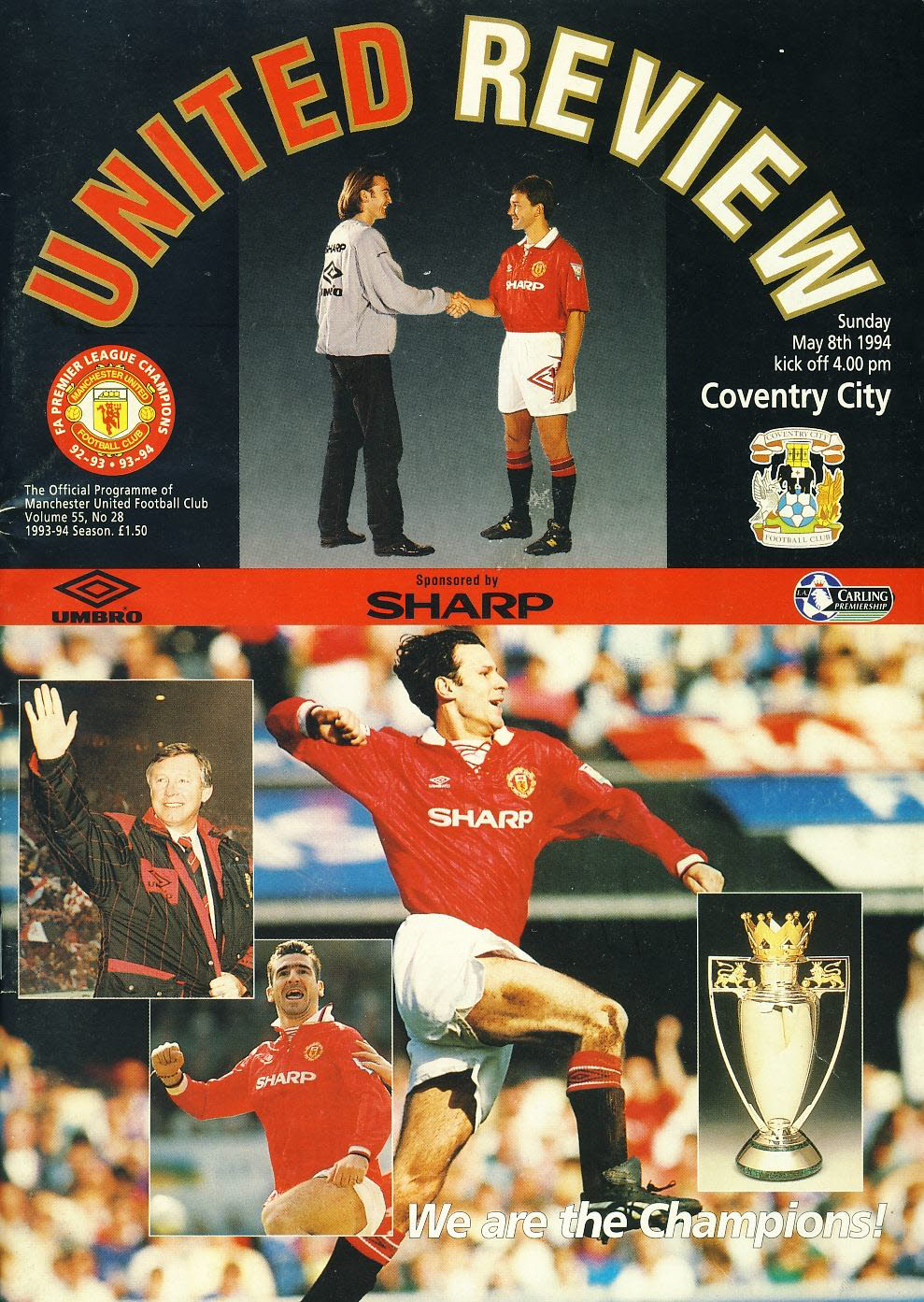 8th May 1994 Mancester Utd v. Coventry City United Review Football Programme ref100115