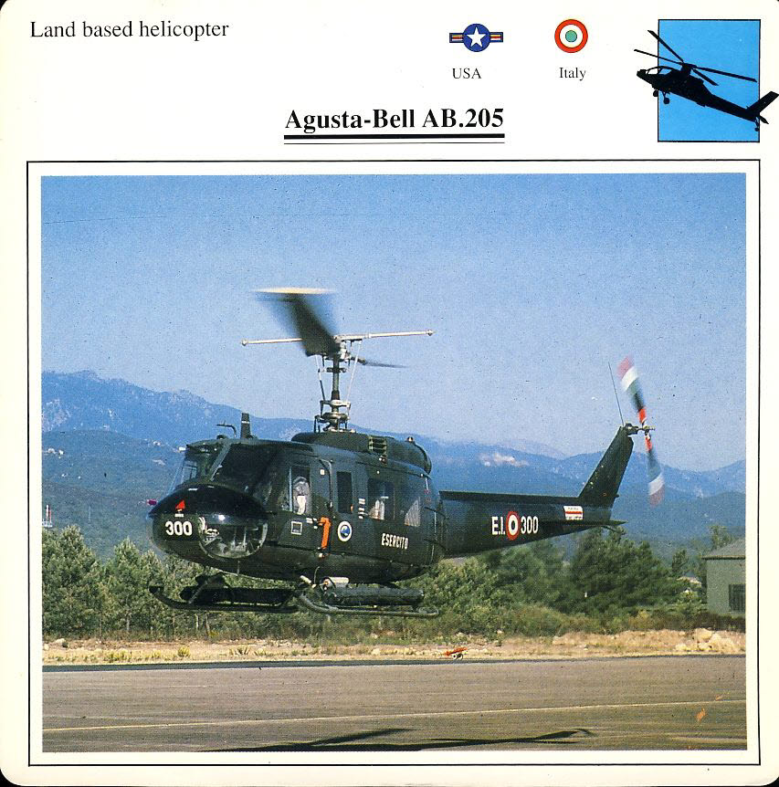 Agusta-Bell AB.205 Land based helicopter USA Italy Military Aircraft Collectors Card refP6