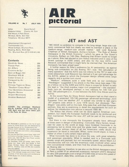 Air Pictorial Magazine July 1979 Westland WG.30,Cruzeiro do Sul,Thorpe Park,