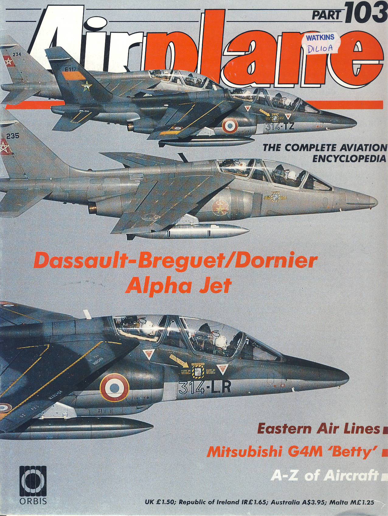 Airplane Magazine part 103 Dassault-Breguet/Dornier Alpha Jet, Mitsubishi G4M Betty, Eastern Air Lines ORBIS Very good. Please see large photo for more information and view condition.
