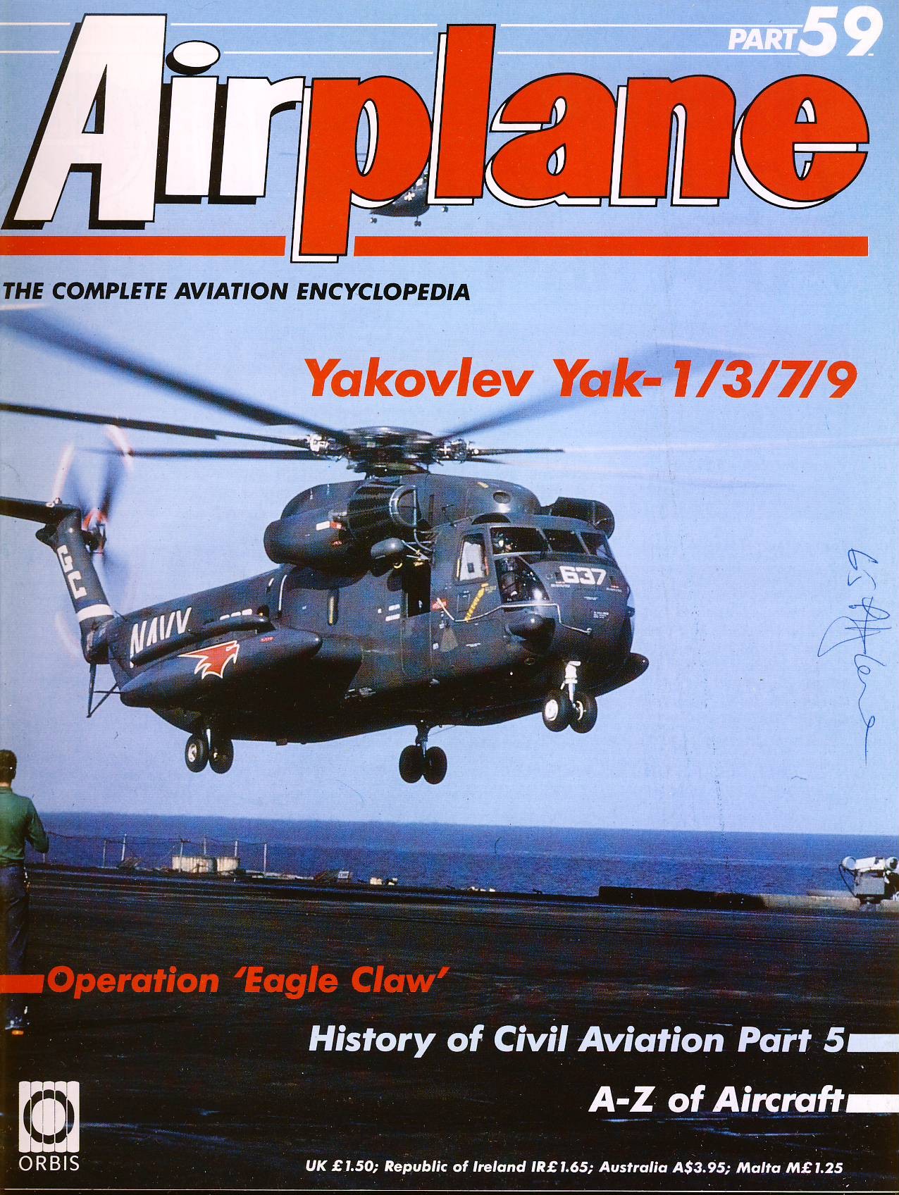 Airplane Magazine part 59 Yakovlev Yak-1/3/7/9, Operation Eagle Claw ORBIS Condition: Very good. Some marks and writing on cover. Please see large photo for more information and view condition.