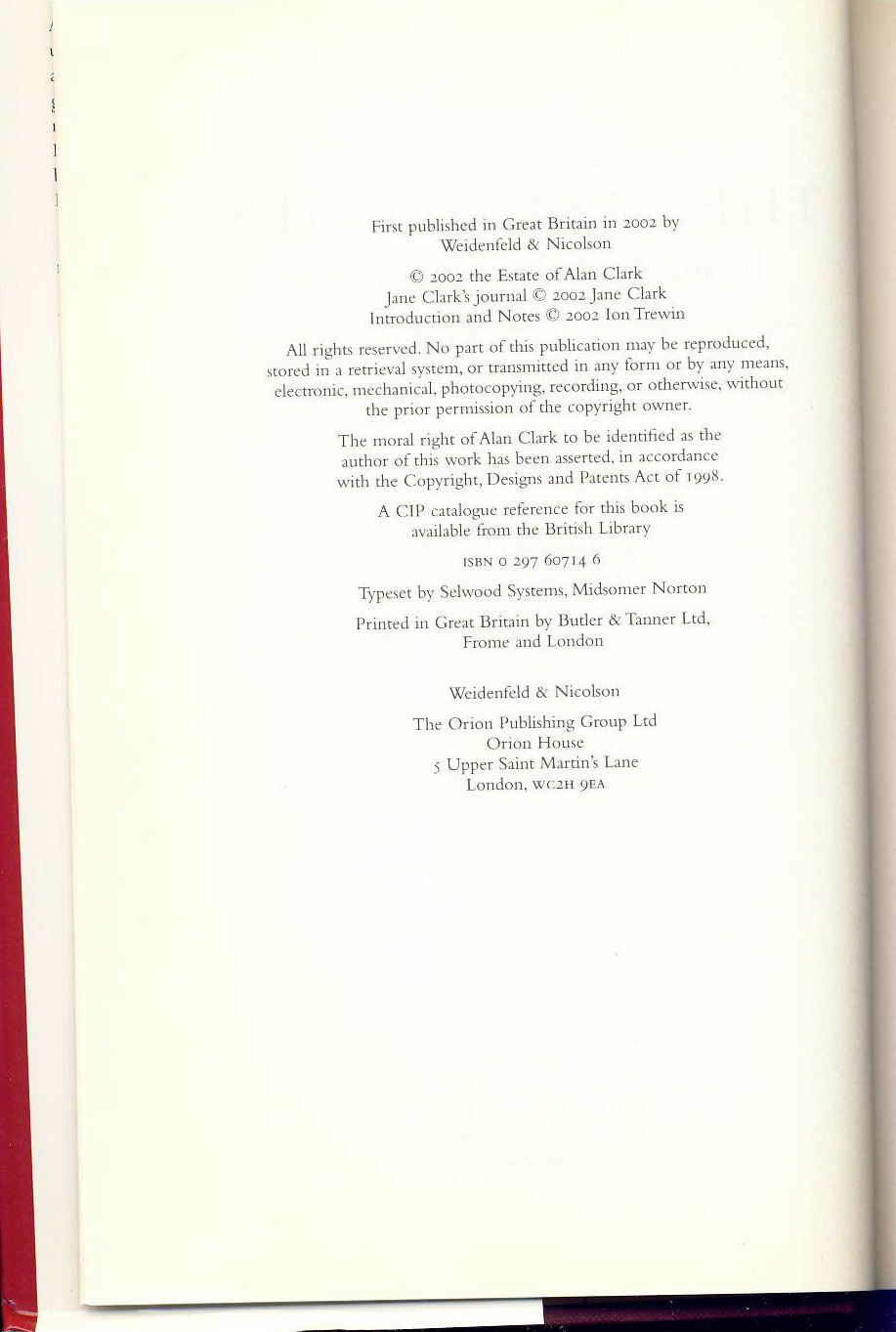 ALAN CLARK The Last Diaries 2002 Hardback Book with dustjacket ref202539