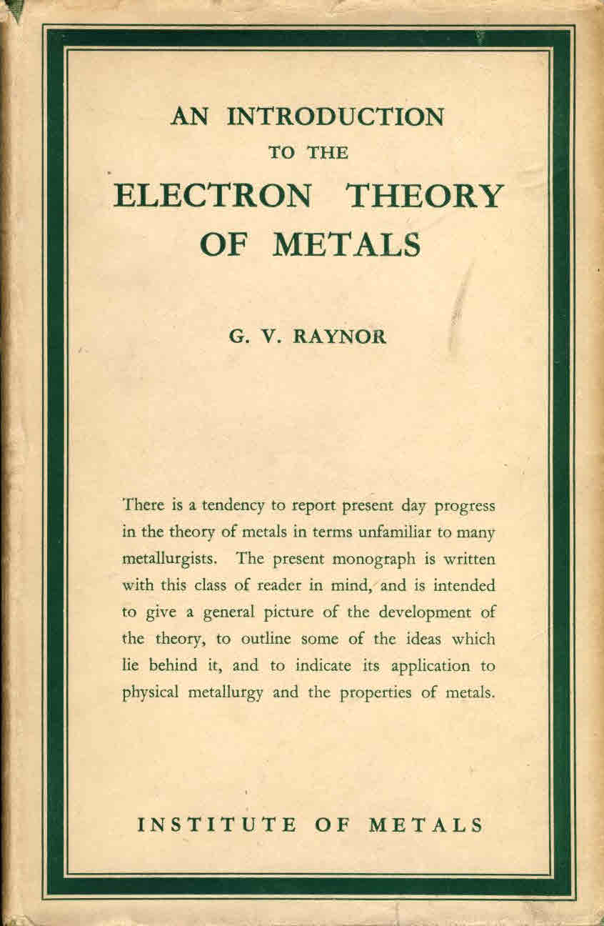 An Introduction to Electron Theory of Metals GV RAYNOR 1947 vintage hardback book with DJ ref94 A pre-owned vintage book in good condition for age. Dustjacket is paper with some wear, tear and marks. Please see large photo and read full description.