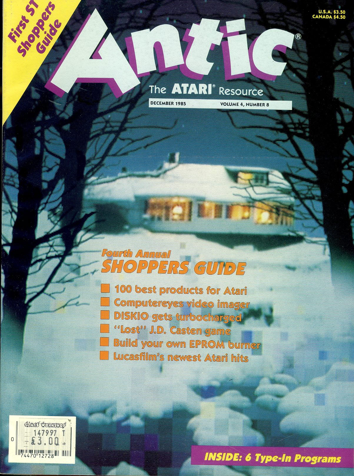 Antic ATARI magazine DEC 1985 Vol.4 #8 SHOPPER’S GUIDE with Autumn catalog inside ref101160 Pre-owned in good condition. Magazine ONLY, no extras, freebies, posters, supplements etc. Please see larger photo and full description for details.